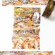 - 主要以电脑软件Painter与水彩笔刷为主要工具绘制而成,透过UV油墨数位印刷,纸胶带表面可以用萤光笔、原子笔、色笔、铅笔任意书写,随意撕贴也可以美化笔记本、卡片、礼盒包装,产生意想不到的美感。