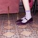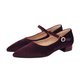 这款柔软的丝绒平底鞋,点缀着精致的珍珠扣饰。