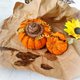 南瓜由柔软的纱线编织而成,充满低过敏性填充物。 天线由电线制成,它们可以弯曲。 这些是装饰南瓜-它们不是用来玩的。 不要把它们给孩子。