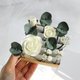 这款新娘花卉发饰缀以逼真的尤加利叶、满天星与玫瑰,是您特殊日子里的完美点缀!这些尤加利叶与花朵看起来、摸起来都极其真实。