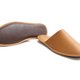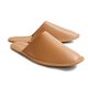 延伸林果良品的皮鞋手工工艺,延续前一款水牛打蜡皮室内拖鞋,此次在皮面加压自然的纹路,与下层略带双色感的皮色,创造出更具层次的视觉感受,