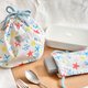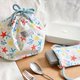 触感介于棉布及防水布之间,没有防水布硬邦邦的塑胶感