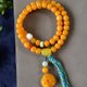 **〔 简介 〕:**天然老花蜡蜜蜡两圈手串,满蜜枣红色老花蜡,颗粒饱满,品相好,无杂裂,配老蜡牡丹花,蜜蜡随形,猛犸牙配饰,原矿绿松石,尺寸7.7毫米,重约17.2克!支持复检 关注设计馆送优惠券!