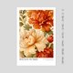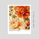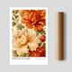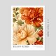 这幅作品以两朵盛开的花卉为视觉重心,柔米白与橘红色彩在画面中交错流动,背景以柔光奶油色衬托花叶,使整体画面在明亮中蕴含饱和的视觉层次。花瓣细致绽放,层层舒展,线条仿佛带有风的韵律,完美体现威廉・莫里斯(William Morris)风格中对自然形式与装饰构图的执着追求。