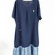 :Urb.【门前有小河】拼接裙口袋洋装 / 深蓝