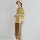 KOOW梧桐花柄油画感简约衬衫 日产轻薄盐缩泡泡纱系带衬衫 - 女装衬衫 - 棉.麻 黄色