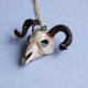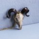 The pendant features a goat skull finished details with color painting white/brown tones. Another unique piece of jewelry that inspired from the wild animal anatomy collection. All the material is brass and finished by hand-painting and enamel, so it is durable. The pendant hang with gold-plated chain.