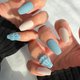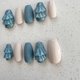 雾面灰蓝色的指甲上立体设计了双层荷叶边,并结合了雾面与光泽两种质感。