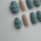 随机搭配的奶茶米色与雾面灰蓝色(带点薄荷绿的渐层色调)双色美甲。