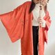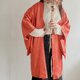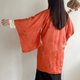 日本制和风印花薄款橘红色古着道行和服外套-H450
