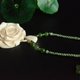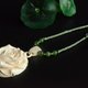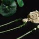 选择产自西伯利亚冻土层的猛犸象牙冰料,南派技艺,手工雕刻,工艺唯美,在连接部分连续2个环环相扣的高难度技法,线条流畅自然,雕刻精细立体,花瓣重叠交织,搭配和田碧玉圆珠,鸭蛋青碧玉蝴蝶与手工编绳工艺而成。整体素雅清浅,古典高贵。