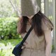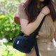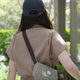 YKK拉链开合,可调节斜挎棉织带。里面一卡位贴袋(小号无内贴袋)。