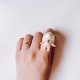 - 单只贩售 - 采用日本棉珍珠 头部采用日本棉珍珠, 营造可爱的猎奇感。 日本网纱素材做出像是贵妇蓬纱披肩的俏皮设计, 中间缝上闪亮宝石。 如此可爱俏皮的贵妇BB就诞生了。 也可制作同组的银河BB耳环。