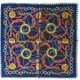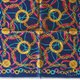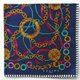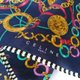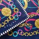 一条深邃海军蓝的复古手帕,缀以典雅的金色锁链、戒指与吊饰图案。