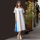 ★ 亚麻白色渐层天空蓝侧边褶裥洋装
