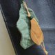 ▸ 叶片灵感源茄叶,选用先染棉麻布,手工缝出叶脉肌理,与柏木茄身构成「柿(事)茄(惬)」CP。