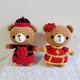 中式结婚熊仔一对 ♥ 尺寸说明 高: 约 20 cm 阔: 共约 22 cm ♥ 材质说明 60%棉, 40%人造纤维