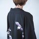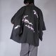 状况良好的日本高端柔软真丝羽织黑色 KURO,带有 Kiku(Manju Kiku)吉祥图案,一些图案有金线轮廓针脚。