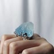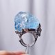 **1.图上整体蓝萤石戒面长约34mm、宽32mm、厚26mm,戒围内径约17.5mm,活围可调。**