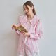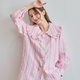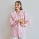 BIRUCHU 条纹粉色顶级亚麻大翻领衬衫:棉麻长袖衬衫