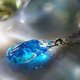 One beautiful pendant in the world has been completed, as if the glittering expression of water was trapped in a piece of ice. It is a gem with a beautiful random sparkle in a transparent turquoise color.
