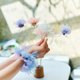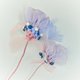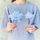 我们将欧根纱布料撕成条状,編织出充满空气感且柔软的花朵。撕裂的过程赋予了柔软布料韧性,通过一针一线扎实地編织,打造出蓬松立體的层次感。