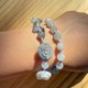 这款双圈手链以玫瑰为主题,采用柔和的淡紫色、浅灰色和白色调,如同黄昏时天空渐层的色彩。