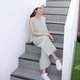 - Sleeveless top + Long pants Cotton-linen top with back details and smocked back cozy pants.