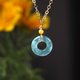 - 【名称】冰蓝水翡翠平安扣项链 14K包金 【尺寸】裸石尺寸约:14.3 x 14.3 x 3.6 mm 【产地】危地马拉 【颜色】蓝绿 【备注】天然翡翠A货 【编号】EL20231005-24EL