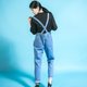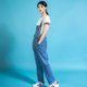 - 宽松版型、牛仔布料、吊带设计、具备口袋。