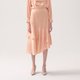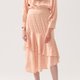 这款缎面亮泽及膝裙,下摆通过两道斜切波浪裙摆,带来摇曳生姿的优雅女人味。