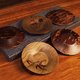**老日本秋田传统工艺樱皮细工 樱树皮绘变花卉纹煎茶托五入/含盒**