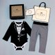 长袖【小绅士全副武装】白领带包屁衣+绅士长裤|礼盒组|→