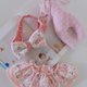 手工双层荷叶围兜+宝宝立体蝴蝶结发带+安抚兔兔