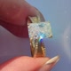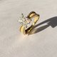 主石选用光影立体的 Radiant 雷迪恩切工钻石,俐落线条与柔和光晕交织,让每一道折射都带着自信与优雅。