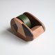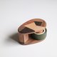 仿鹅卵石圆润外型,外加各种原木聚集而成。纯手工打磨,使用木蜡油涂装,触感细致温润,闻得到原木的香气,也清晰可见各种原木纹质感。使用力大牌专利刀片,轻松切割纸胶带,切面细致,近无齿痕。