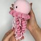 Crochet Jellyfish toy has no hard parts, the eyes are hand embroidered, materials are safe and hyppoallergenic.