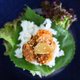 4. 将芝麻叶,红叶生菜就个人喜好包入热饭,猪肉片,辣蒜粒,少许白芝麻便可