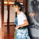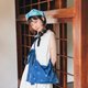 倾向中性的斜背包设计,由蓝染布料制作而成
