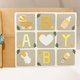 九宫格:婴儿推车、包屁衣、手摇玩具、奶瓶、BABY 字母剪字、爱心。