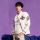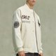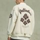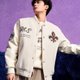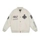 ■ 羊毛棒球外套+袖口PU皮革剪接