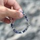 天然蓝纹石、全925纯银配件、纯银几何方块、细钢线。