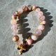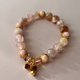 Lica Accessories 选用约9mm樱花玛瑙+8mm女王贝镀金配件+红碧玺镀金蝴蝶+镀金纯银配件制作本串手链。图片手链手围约14.5cm。可视乎水晶素材库存,再根据顾客手围进行订制。