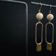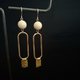 这款长耳环结合了德国制的象牙白织纹珠,以及约 1 厘米长的黄色链条,如同流苏般装饰着金色椭圆坠饰。 织纹珠 约 10mm 金色椭圆环 约 34×12mm 耳针/K14gf