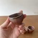 手捏小圆杯,不定型的形状和柴烧落灰互相搭配,非常可爱。每一个都不一样,欢迎选购。
