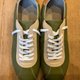 散发着精致复古设计与上乘皮革魅力的运动鞋。深邃的绿色调,搭配驼色的后跟饰片与白色的鞋带及拼接面板,营造出自然沉稳的印象。无论是休闲风格或俐落的商务休闲风,皆能轻松搭配,兼具舒适脚感与出众的设计感。