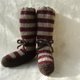 酒红色、军绿色条纹。暖和的宝宝长靴长袜