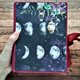 Moon junk journal contains: tea dyed paper, archival papers, lace, charms, fabric cover. Hardcover but with fabric on it.