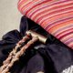 ▲以手织针织布+拼色棉麻布制作而成,手工棉的触感搭配鲜艳的配色,组成鲜明的色彩,是搭配衣着的好物,回归自然的美好经验