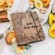 您可以选择我们的现有设计,并在指定栏位填入您想加上去的文字。我们将免费为您镌刻在书本封面与书脊上。若您想拥有专属设计,只需支付少许额外费用,即可提供您的照片,让我们为您量身打造。